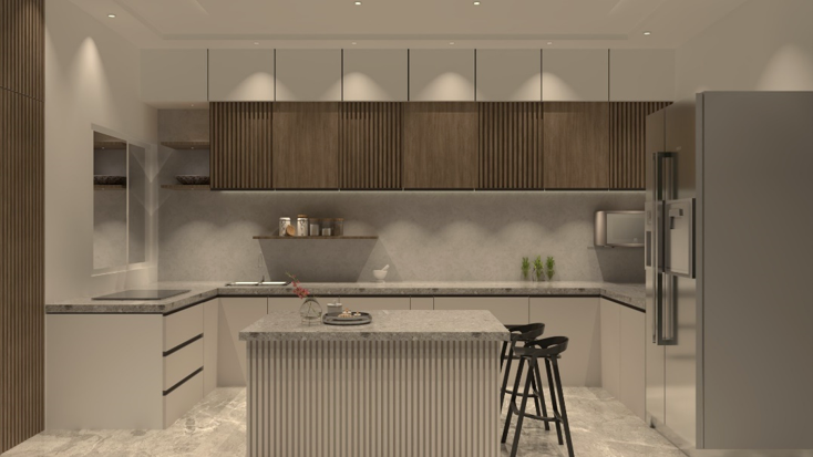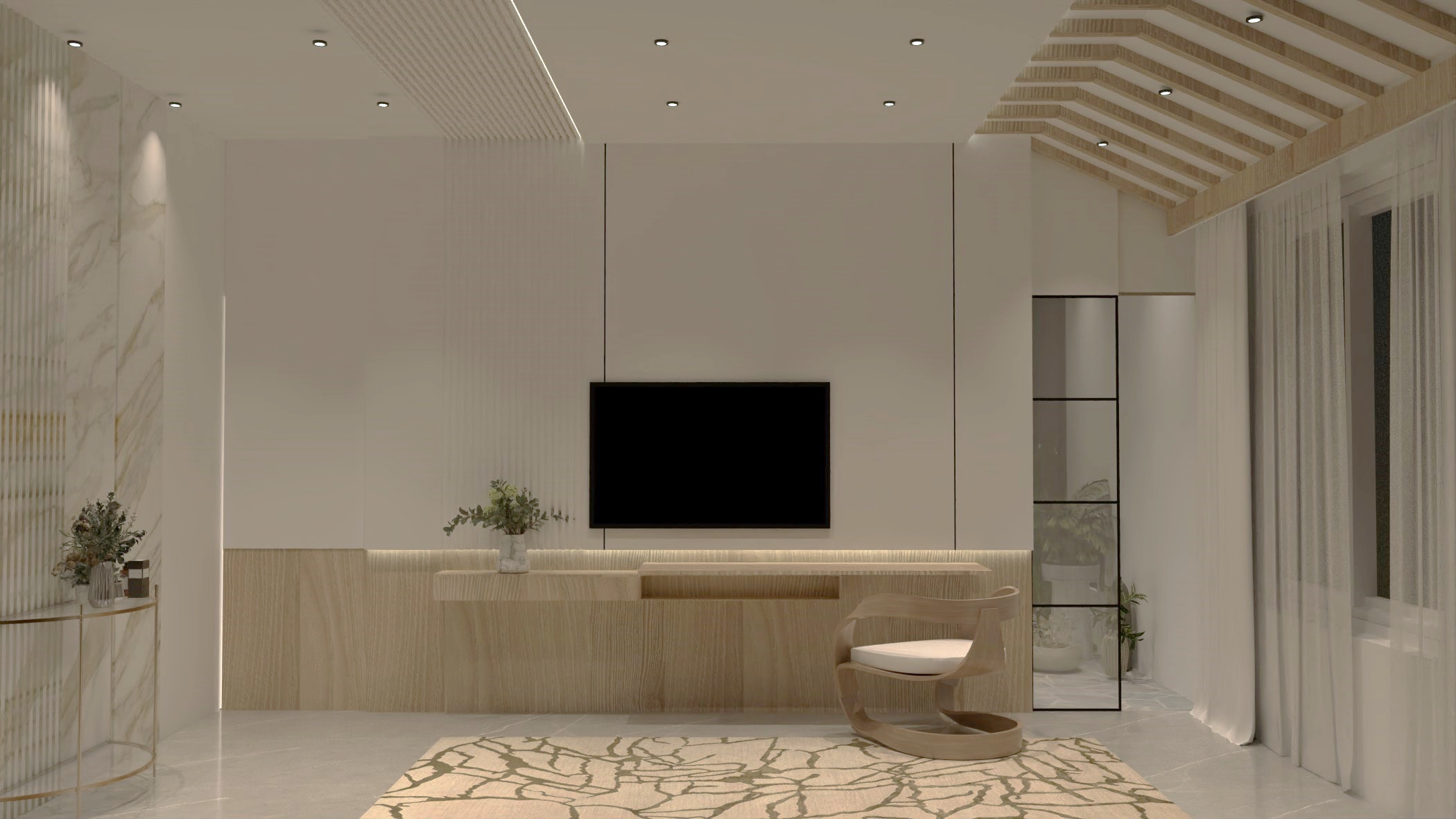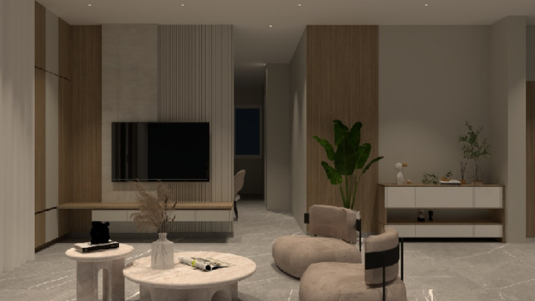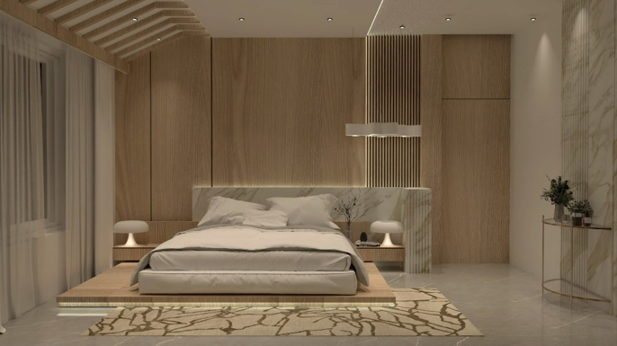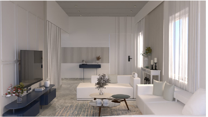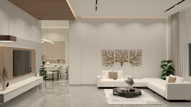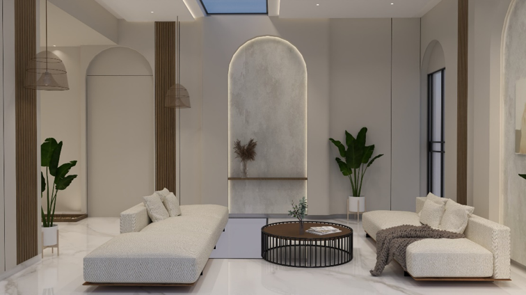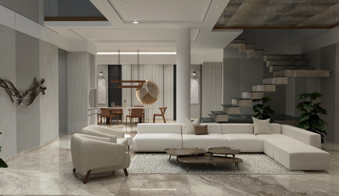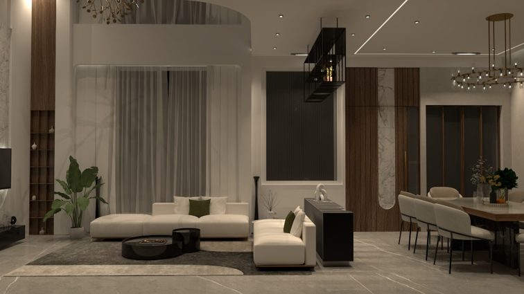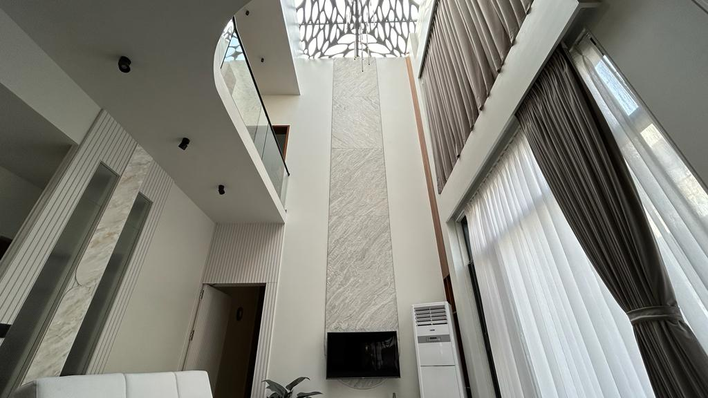 This interior project is a true embodiment of modern luxury, seamlessly blending minimalism with warmth through its double height design concept.