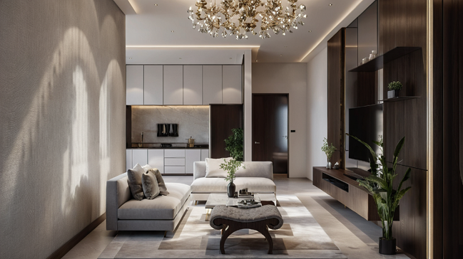 This 2bhk sample flat interior is thoughtfully designed to reflect modern, practical living while showcasing a harmonious blend of style and functionality for prospective homeowners.